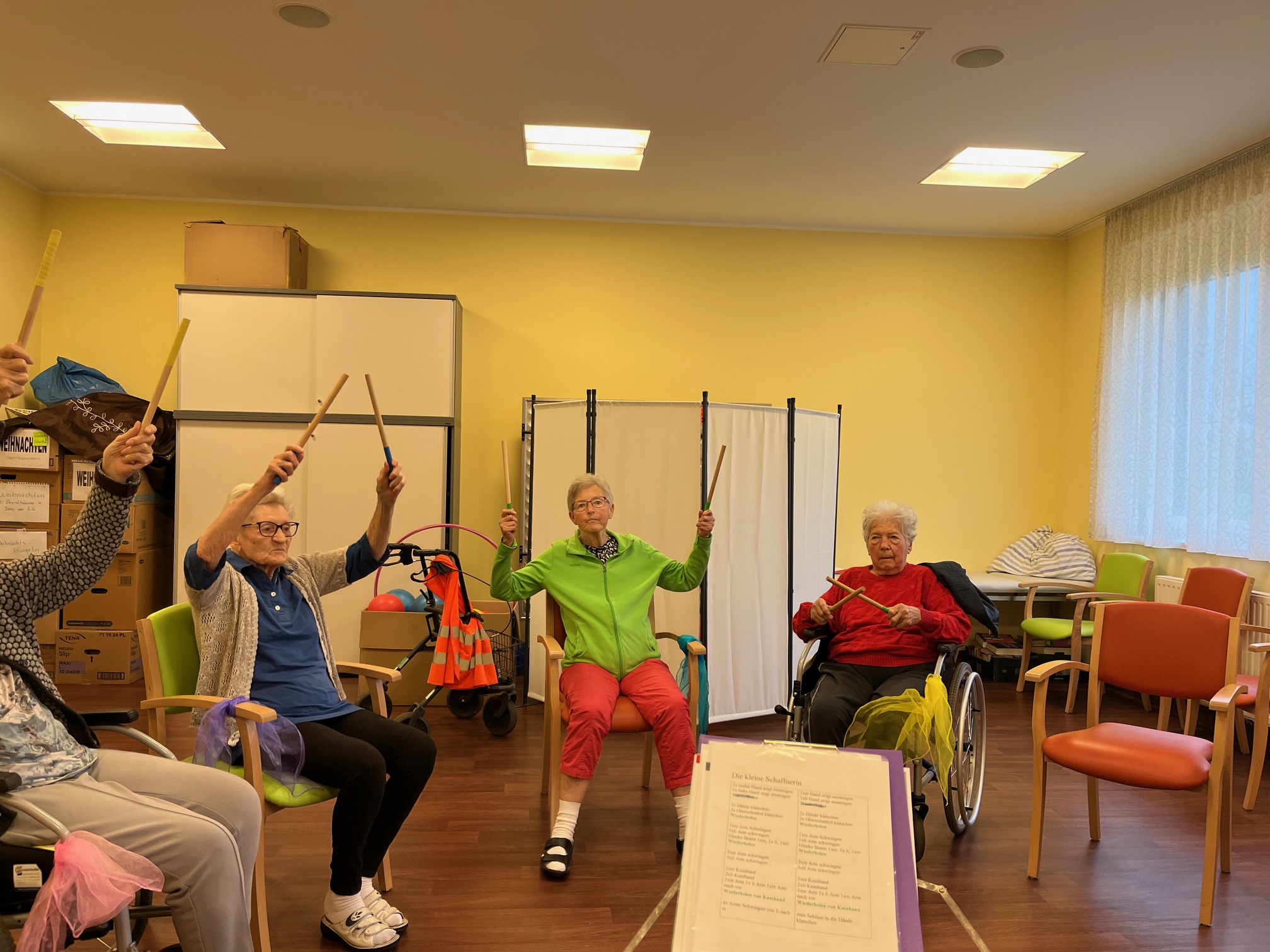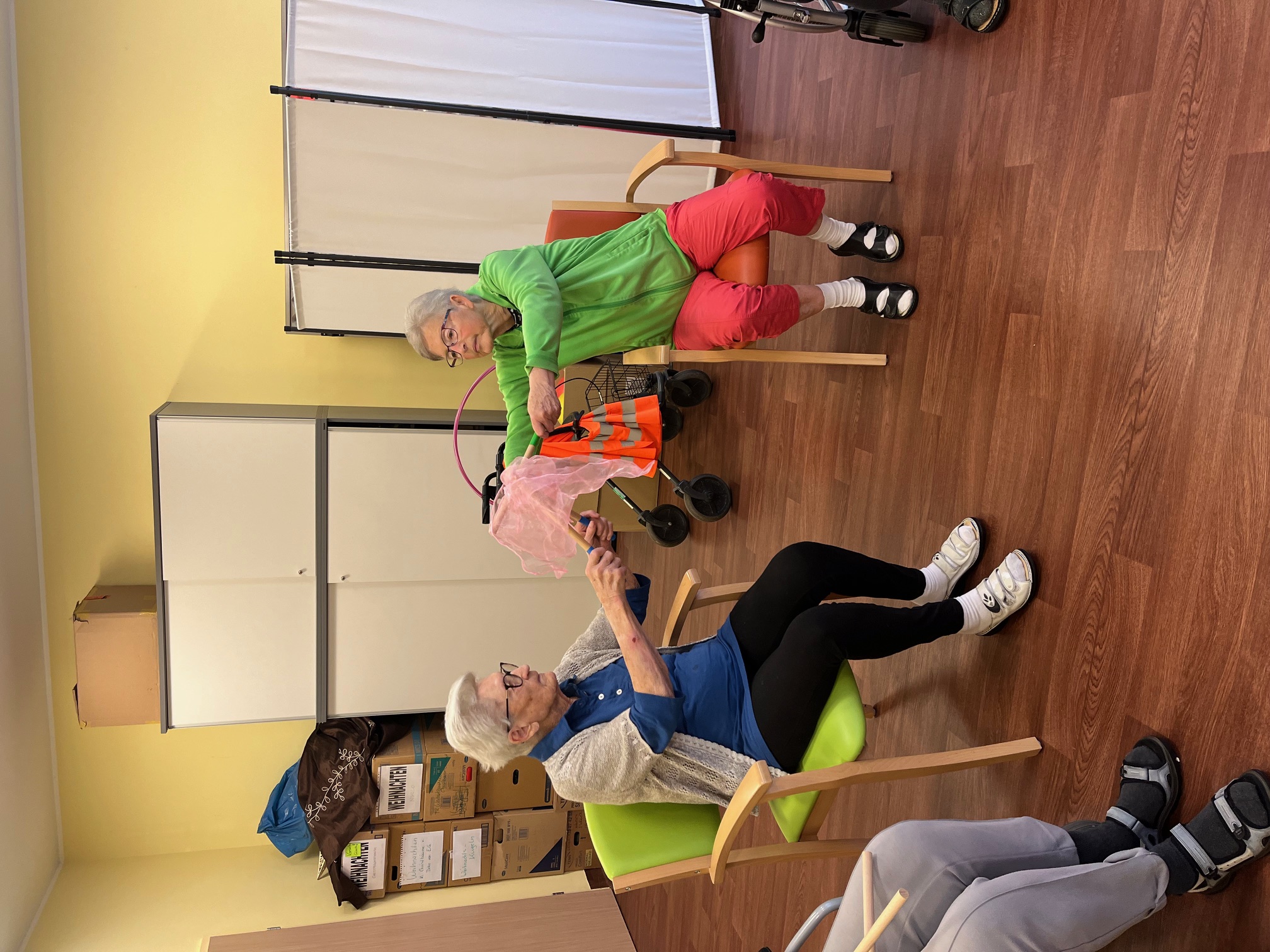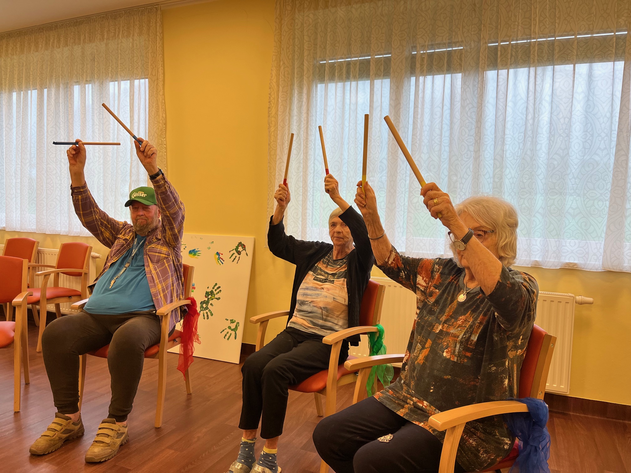 Im SeneCura Pflegezentrum Lurnfeld nahmen die Bewohner:innen fleißig an der Sitz-Fitness-Aktivität teil. Bestückt mit jeweils zwei Stäben, wurden die Muskeln der Seniorinnen und Senioren aktiviert und die Mobilität gefördert. Das Umherreichen eines leichten Tuches verbesserte die Geschicklichkeit sowie Koordination und sorgte für einige lustige Momente. Die dynamischen Übungen fördern die körperliche Gesundheit der Bewohner:innen und der Spaßfaktor blieb natürlich auch nicht aus.