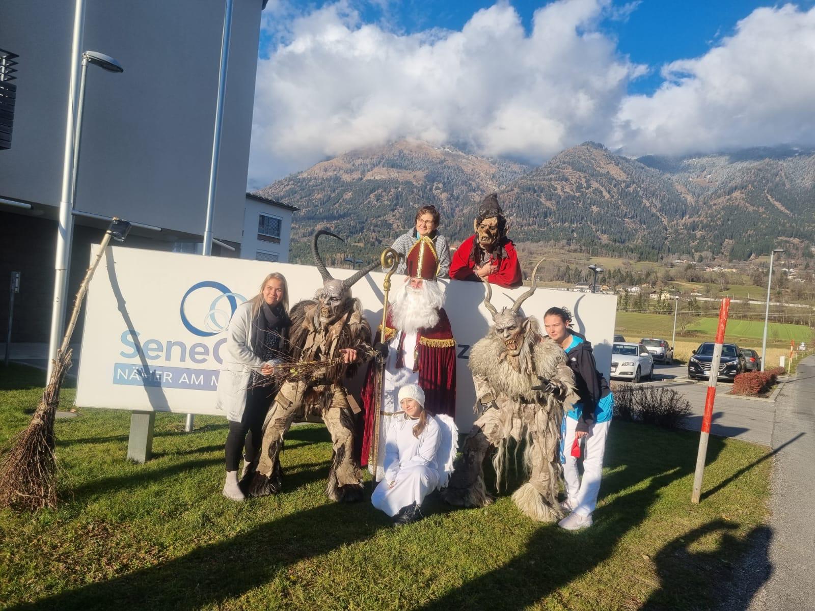 Die Bewohner:innen des SeneCura Pflegezentrum Lurnfeld erhielten letzte Woche Besuch vom Nikolaus und Krampus. Auch die Perchtengruppe „Lords of Fire Spittal“ kam ins Haus. Der Besuch weckte viele Erinnerungen aus Kindheitstagen und sorgte für gute Laune im Haus. Der Nikolaus teilte kleine Geschenke aus und zauberte so ein Lächeln auf die Gesichter der Bewohner:innen.