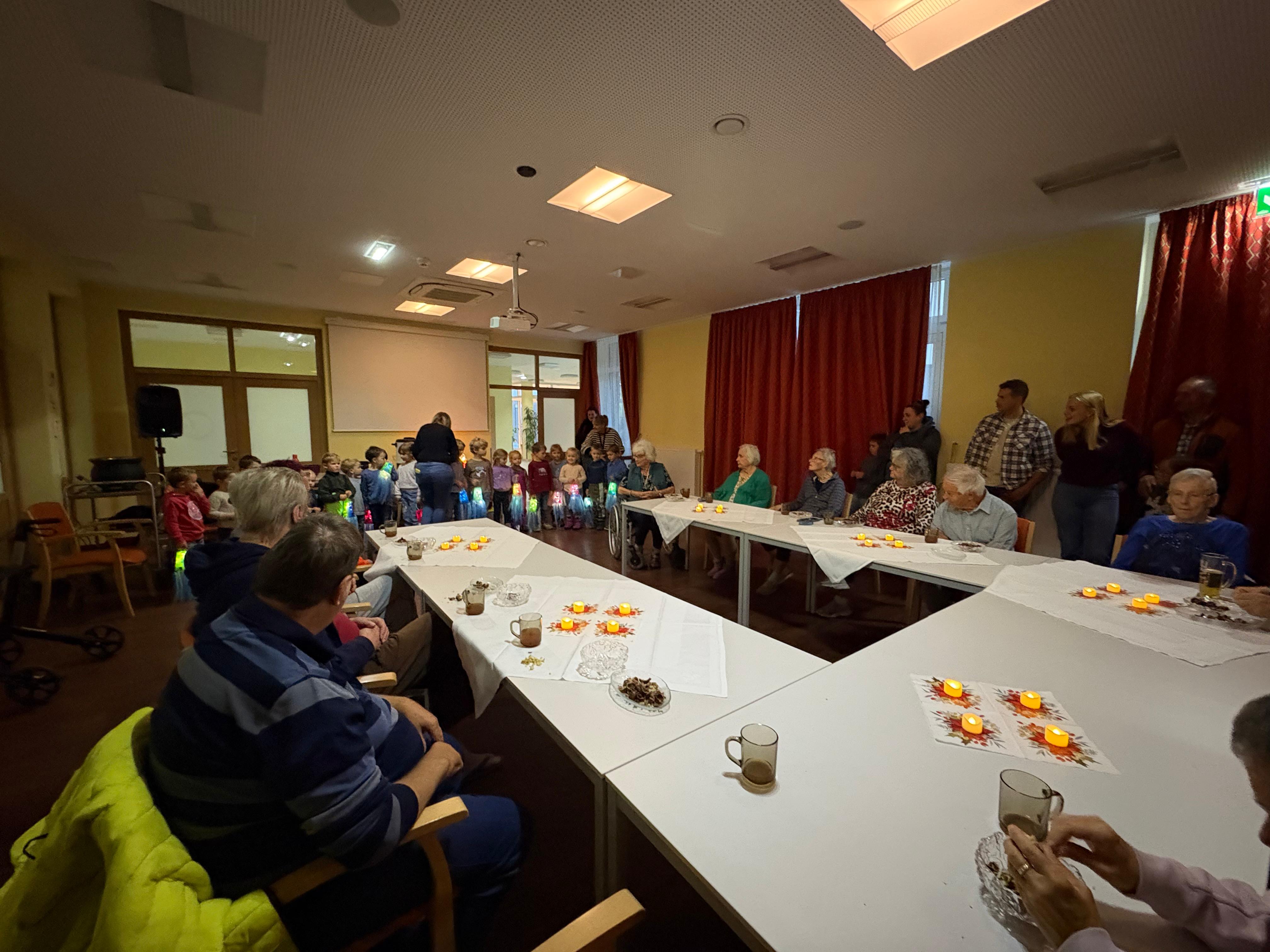 Es wurde eine tolle Aufführung unter der Leitung von Veronika Stefaner gestaltet. Als Auftakt haben die Kinder gemeinsam gesungen, es wurde das Martinsspiel präsentiert und der Abschluss bildete das tolle Laternenlied. Während eines Rundganges durften die Kinder ihre individuell sowie wunderschön gestalteten Laternen stolz den Bewohner:innen präsentieren – die Seniorinnen und Senioren waren begeistert und lobten die Kunstwerke in den höchsten Tönen.